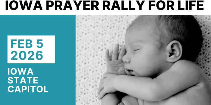 • Invited speakers include: Iowa Governor Kim Reynolds, Iowa Attorney General Brenna Bird, Iowa Representative Jon Dunwell, and other governmental, pro-life, and faith leaders including Rev. Alex Post (LCMS District Life Coordinator for Iowa District East).